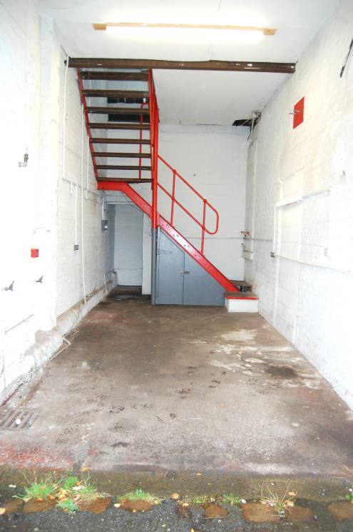 Ground floor workshop with a staircase leading up to four private offices