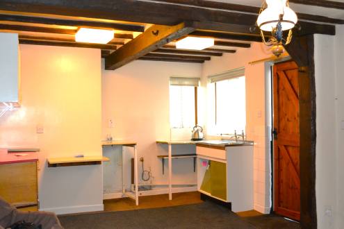 Two central heating radiators, exposed beams.